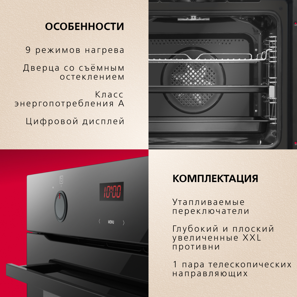 Духовка - ок. Плюсы: Сказать что чем то удивил, не могу. Соответствует заявленной опциональности. Минусы: В раздел недостатков могу поместить сложность первоначальной настройки, а так же инструкцию по эксплуатации, которая не только ни в чем не помогает, но ещё и путает. Настройка Удалась только после интернет поиска.
