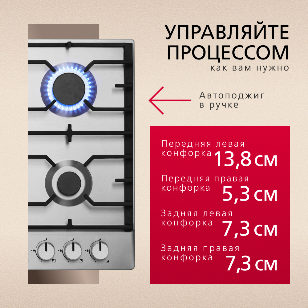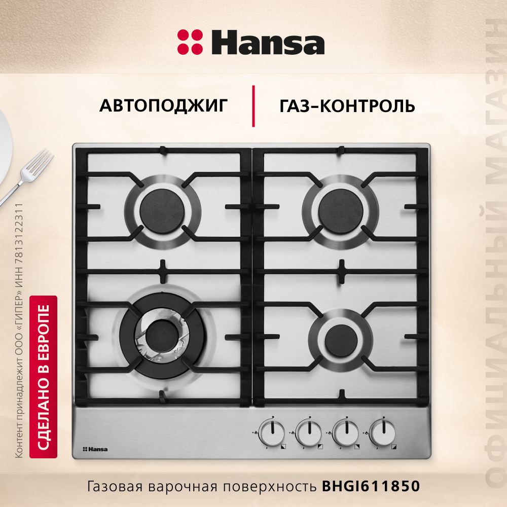 Газовая поверхность Hansa BHGI611850 поможет воплотить в жизнь любые кулинарные задумки. Благодаря удобному расположению зон нагрева можно начать готовить одновременно на 4 конфорках. Чугунные решетки не только обеспечат безопасное использование поверхности, но и облегчает уход за ней – их можно мыть даже в посудомоечной машине. WOK конфорка с дополнительным рядом пламени порадует не только обновленным дизайном, но и повышенной мощностью нагрева.