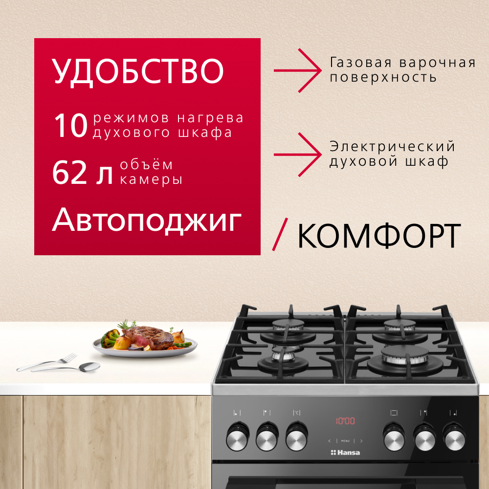 Комбинированная плита Hansa FCML59325 действительно лучшее приобритение для нашей семьи. Духовка в этой плите, это супер помошница на кухне, регулируются подогревы, хорошего качества покрытие и при этом она еще очень. Плюсы: Выпекает супер, стильная, удобная в поджигании. Минусы: Нет