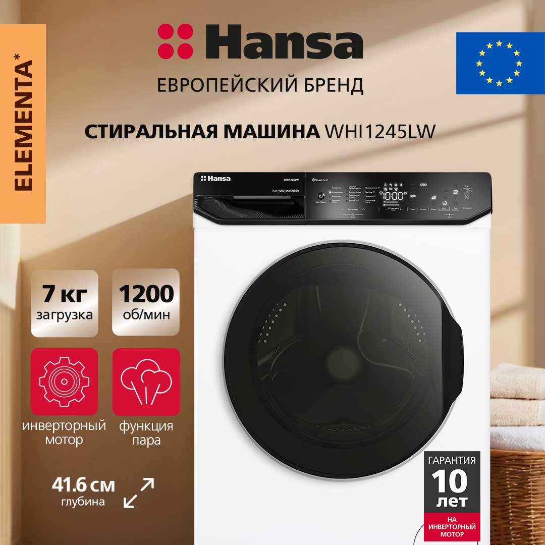 Отдельностоящая стиральная машина Hansa WHI1245LW сочетает современный дизайн и передовые технологии. Сенсорная панель управления с дисплеем делает выбор программ легким и интуитивно понятным. Инверторный мотор работает тихо и экономично, что подтверждает высший класс энергопотребления А+++. Двенадцать программ охватывают все типы тканей: от деликатной стирки до интенсивного режима для хлопка. Уникальная функция пара Steam Touch освежает вещи и бережно разглаживает складки, облегчая последующую глажку. Режим Турбостирки создан для слабозагрязненных вещей — он значительно сокращает время цикла и при этом экономно расходует электроэнергию. Система самодиагностики оперативно сообщит о возможных неисправностях. Машина защищена от перепадов напряжения, контроля дисбаланса и излишнего пенообразования. Функция блокировки управления обезопасит технику от случайных нажатий. Очистка барабана специальной программой поддерживает его в идеальной чистоте. При объеме барабана 45 литров максимальная загрузка составляет 7 кг. Эта модель создана для тех, кто хочет получить безупречный результат стирки и современный подход к уходу за вещами.