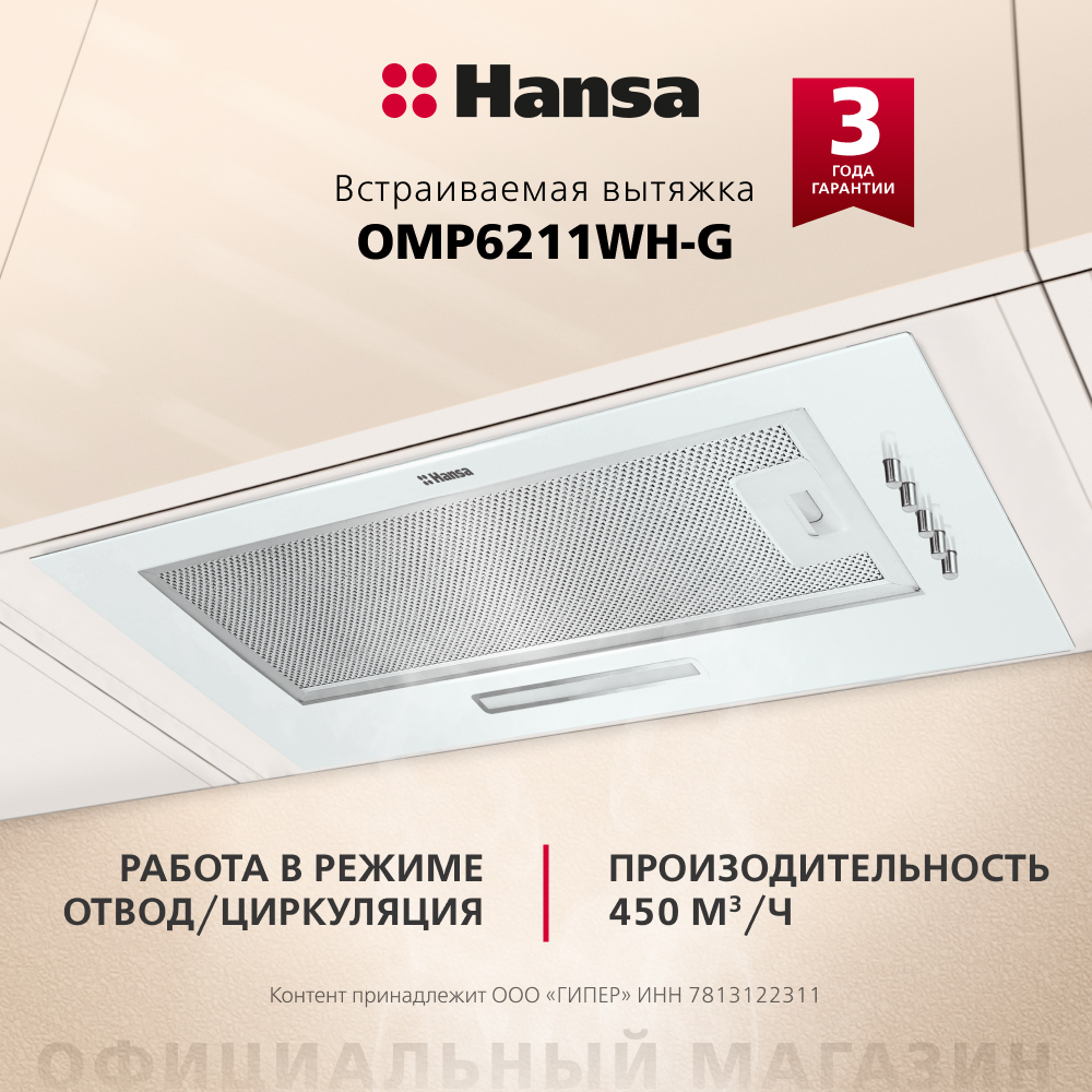 Позволив себе купить встраиваемую вытяжку Hansa OMP6211WH, вы сможете оценить ее возможности и применить их в борьбе с неприятными пищевыми запахами во время готовки. Модель в приятной белоснежной расцветке с серебристыми кнопками обладает достойным перечнем опций и особенностей: