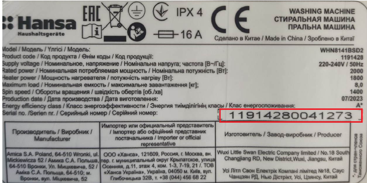 Модель и серийный номер прибора расположены на заводской наклейке. Название модели представляет собой комбинацию из заглавных латинских букв и цифр, серийный номер -комбинация из 14 цифр